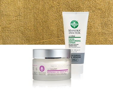 Keep skin hydrated. Manuka Doctor's range of moisturisers hydrate and nourish the skin with key ingredients Purified Bee Venom and Manuka Honey.